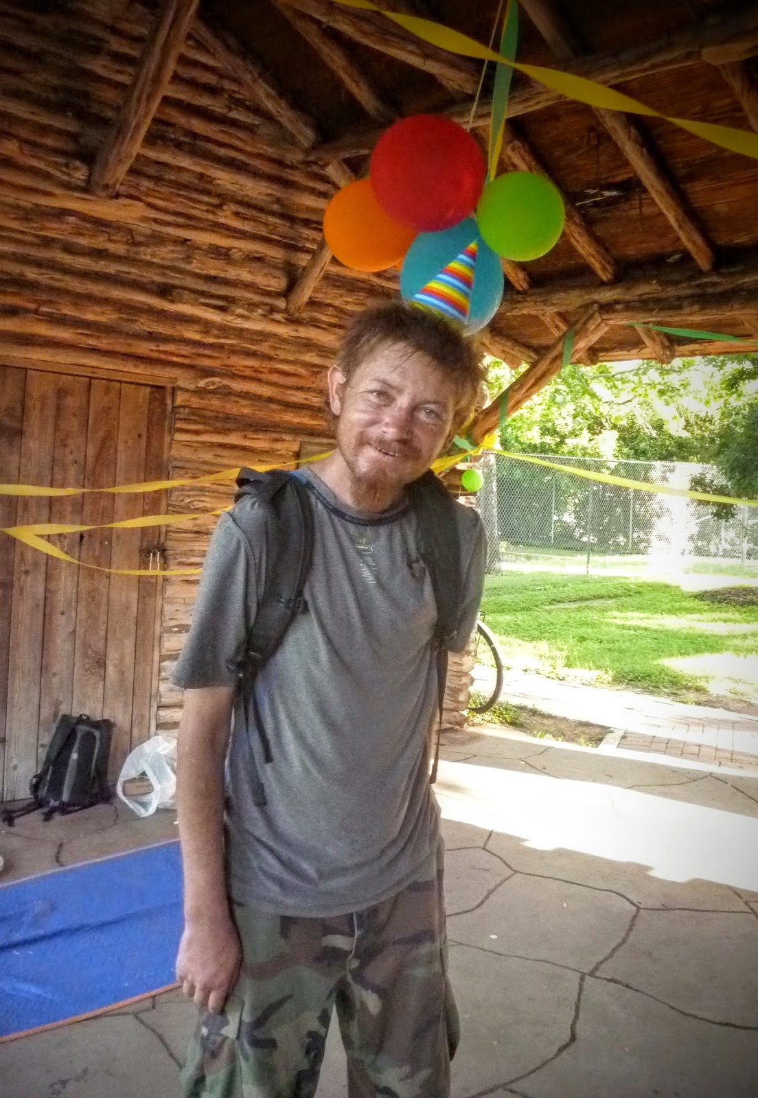 As the "party" went on, he slowly shrunk to the outskirts of everything. He was obviously grateful, but there was a tangible tug-of-war between our world and his...as his 'park buddies' all ate near but not with us.